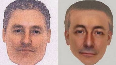 Dos retratos-robot producidos esta mañana. Según la policía son del mismo hombre. Pero de hecho, son de dos hombres. Su pelo es diferente. Sus cejas son diferentes. Sus narices son diferentes. Sus orejas son diferentes. Sus labios son diferentes. Sus mejillas son diferentes.