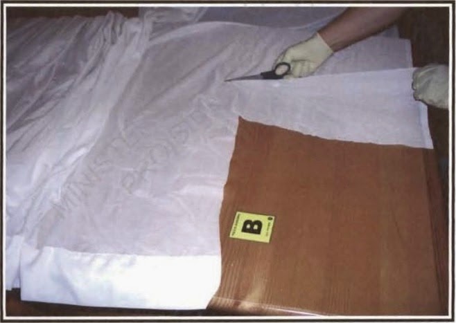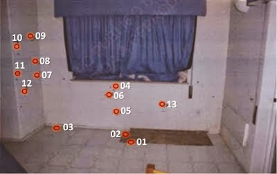 La mancha referida como vestigio nº 3 fue posteriormente sometida a análisis para determinar si la sangre era de origen animal, pero reaccionó positivamente como siendo sangre humana.