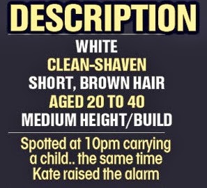 Andy Redwood: Era un hombre blanco de pelo castaño y la criatura que llevaba en brazos, fue descrita como de tres o cuatro años de edad, pelo rubio, posiblemente llevando puesto un pijama. Una descripción muy cercana a la de Madeleine McCann.